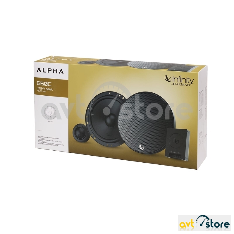 Infinity Alpha 650C komponent dinamik sistemi avtomobilinizdə yüksək keyfiyyətli və balanslı səs təmin edir. 315W peak gücü və 45W RMS çıxışı ilə həm güclü bass, həm də aydın yüksək tezliklər təqdim edir. Komplektə midbass, tweeter və krossover daxildir – bu da daha detallı və professional səs paylanması yaradır. Müasir dizaynı və möhkəm konstruksiyası ilə uzunömürlü istifadə üçün idealdır. Avtomobilinizdə konsert effekti yaşamaq istəyirsinizsə, Infinity Alpha 650C doğru seçimdir.